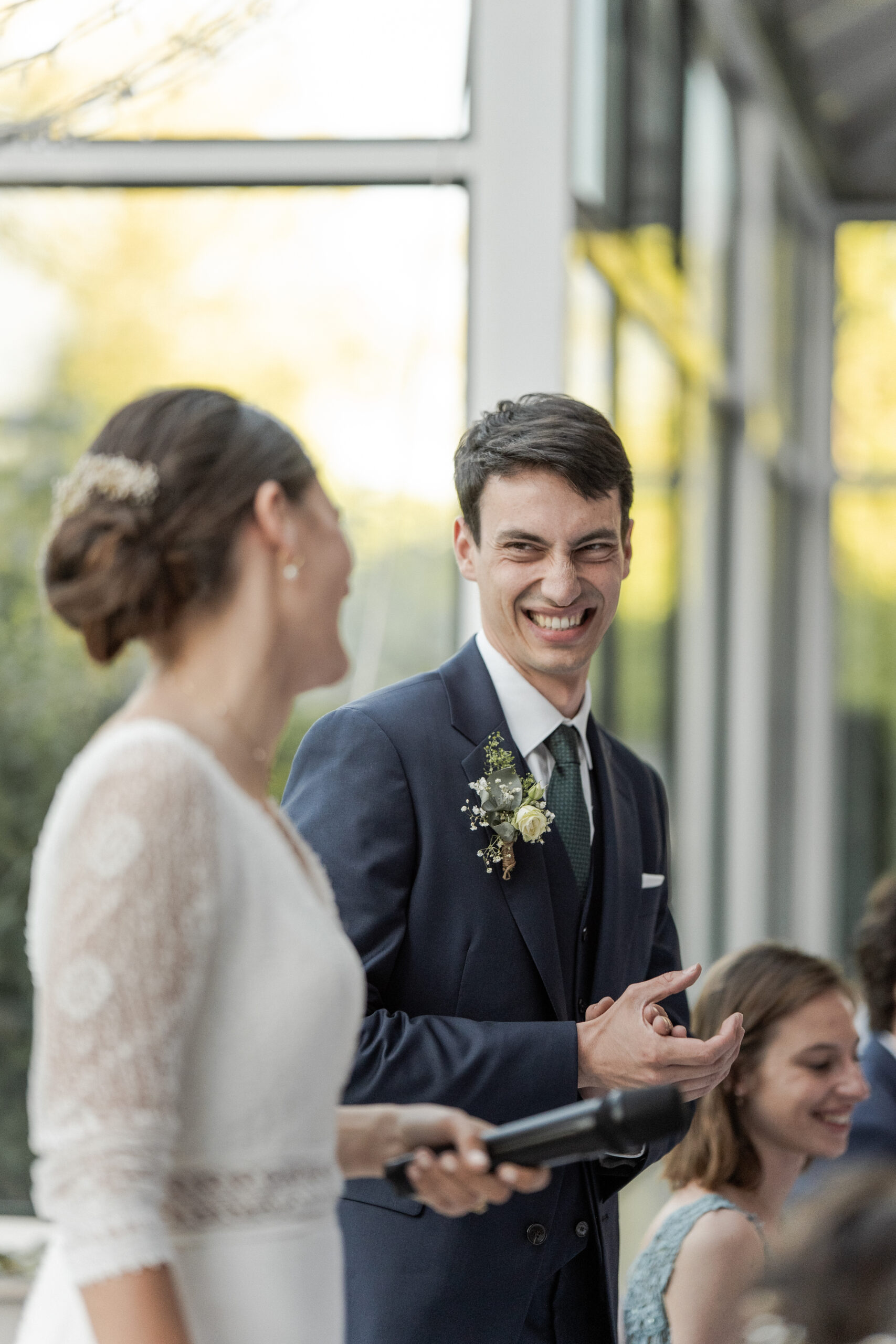 Pendant le vin d’honneur, j’observe et je me tiens en retrait pour voir les scènes de vie et capturer ce qui se passe. Je suis également là, disponible et ravie de pouvoir photographier les demandes de vos invités: vos cousins veulent un portrait de famille ? Demandez-moi ! Votre meilleure amie veut une belle photo de couple ? Avec plaisir. Votre mamie veut une photo seule avec la mariée ? Appelez moi ! Je suis là pour le couple, et pour les invités. Et c’est pourquoi je passe entre les tables, entre les invités, en restant discrète, mais disponible pour les prendre en photo.